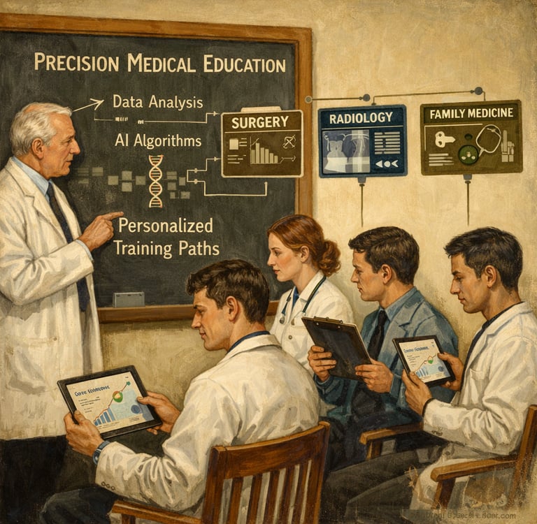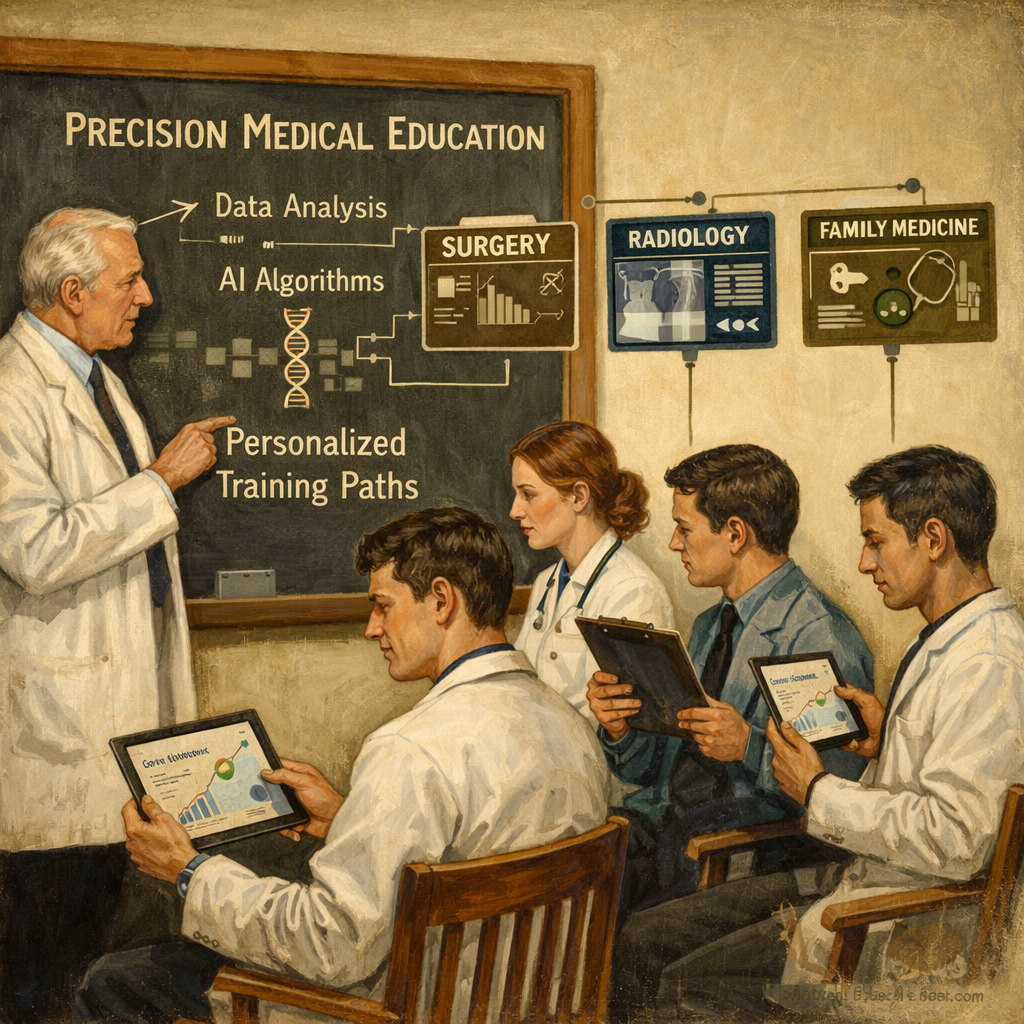 Eso es, precisamente, lo que intenta analizar el artículo sobre precision medical education, o educación médica de precisión. Triola y Burk-Rafel no presentan un ensayo clínico ni un algoritmo revolucionario aislado. Hacen algo distinto, y en cierto modo más profundo: proponen un marco conceptual para entender cómo la educación médica podría dejar de organizarse alrededor de trayectorias uniformes y empezar a adaptarse, de forma más inteligente, a las necesidades reales de cada estudiante o residente. En esa transición convergen varias corrientes que ya venían ganando fuerza, como la formación basada en competencias, la personalización del aprendizaje y el uso creciente de datos, analítica e inteligencia artificial.